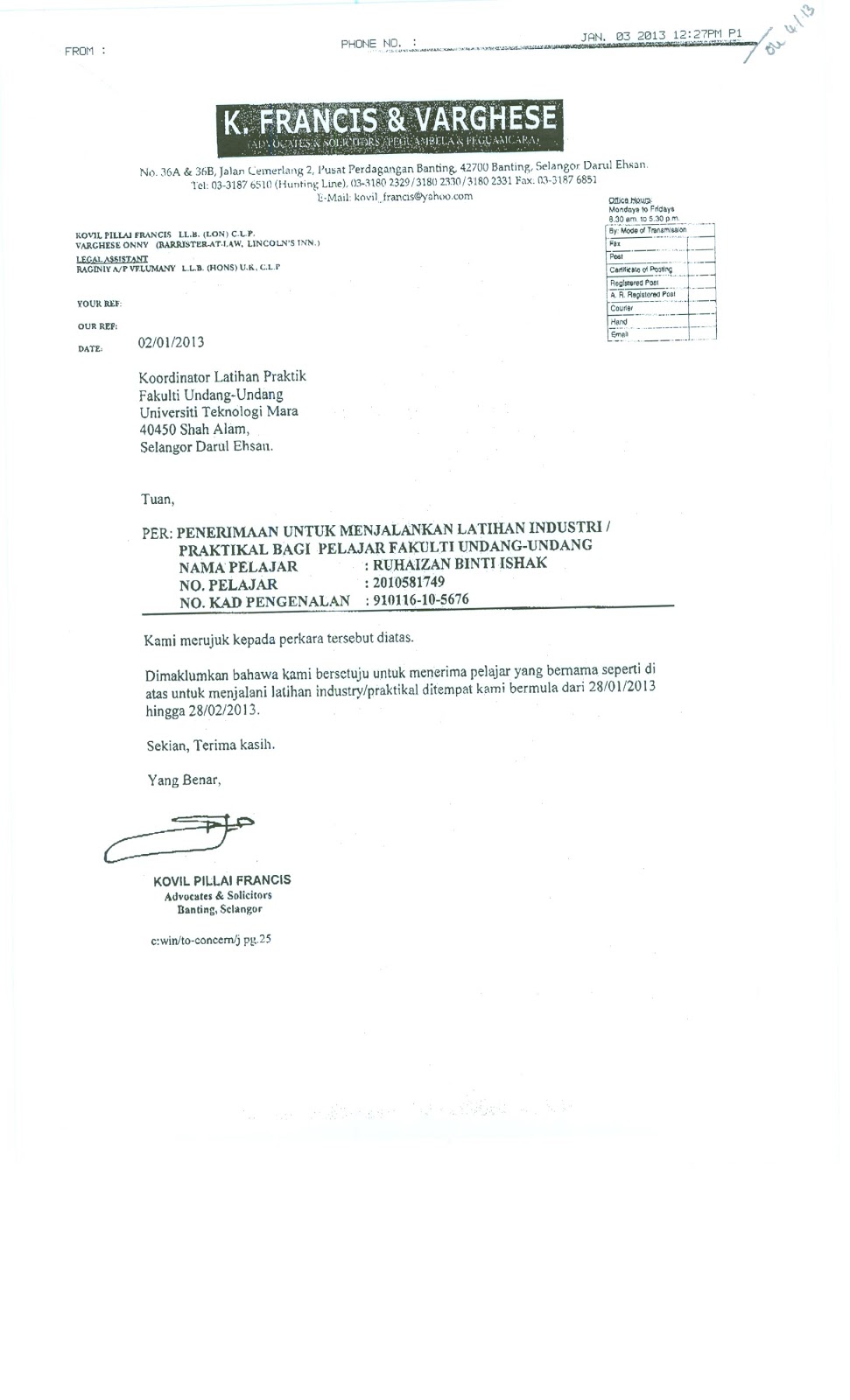 Contoh Surat Setuju Terima Tawaran Latihan Industri