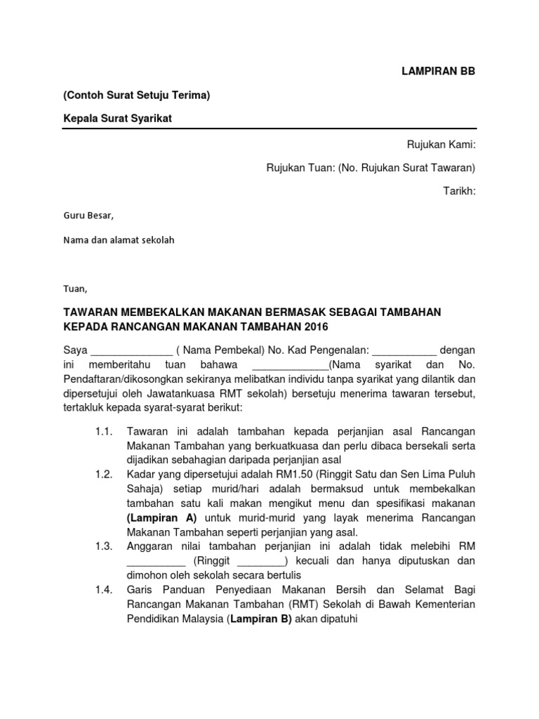 Pdf Surat Setuju Terima Tender Letter Of Acceptance Of Tender Nabilah Aiman Academia Edu