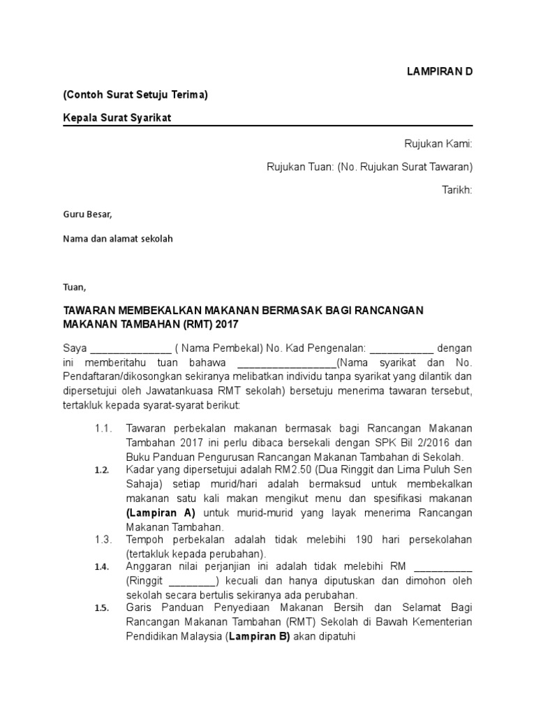 Pdf Surat Setuju Terima Tender Letter Of Acceptance Of Tender Nabilah Aiman Academia Edu