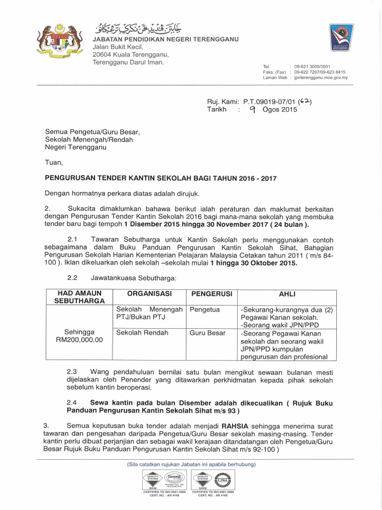 Pengurusan Tender Kantin Sekolah Bagi Tahun 2016 2017
