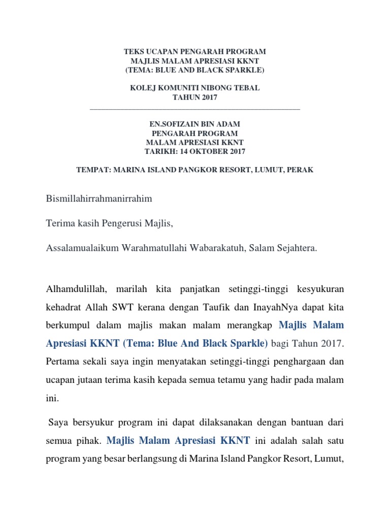 Teks Pengarah Program Docx Teks Pengarah Program Terima Kasih Saudara Pengacara Majlis Assalamualaikum Wbt Bersyukur Kita Kepada Allah Kerana Memberi Course Hero