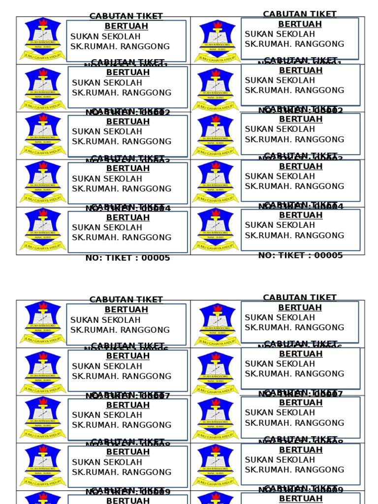 Simple Contoh Tiket Cabutan Bertuah