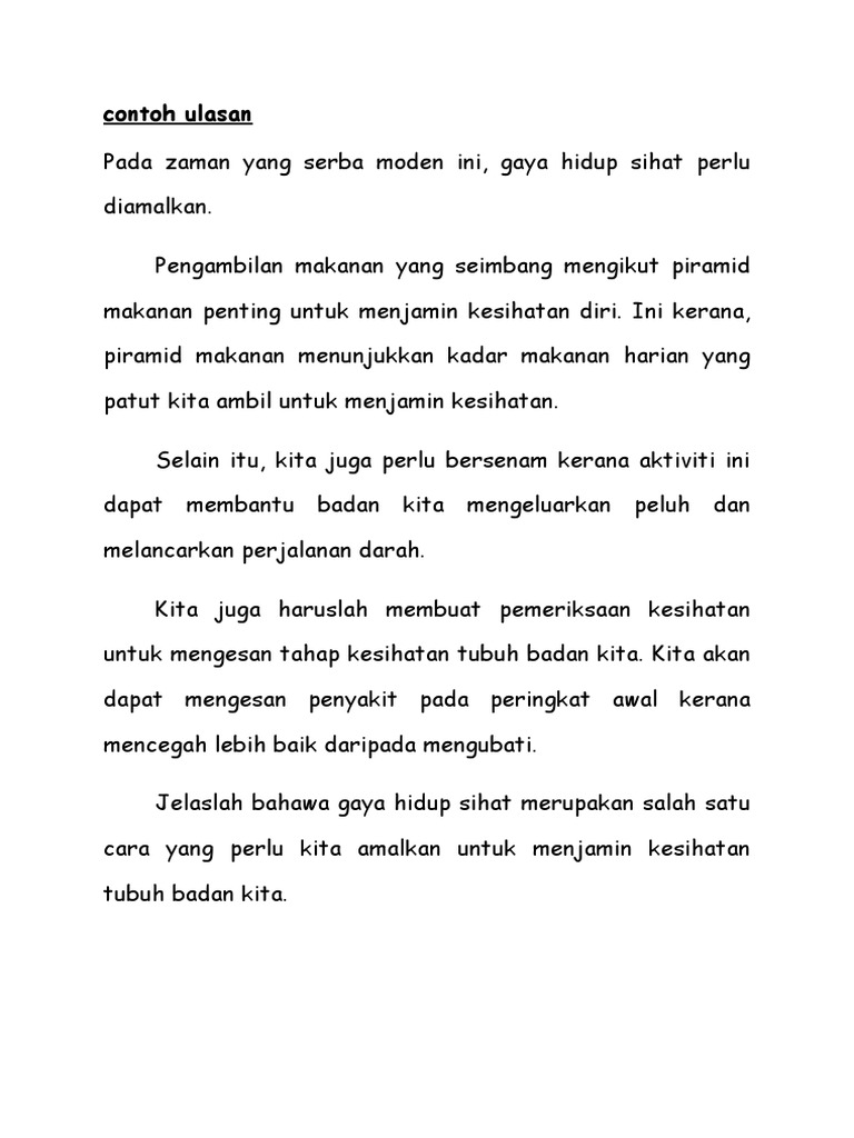 Karangan Amalan Gaya Hidup Sihat Ulasan