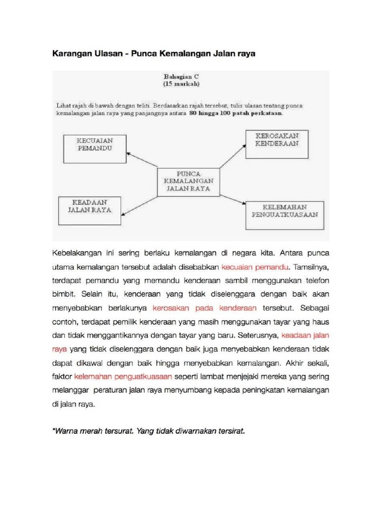 Mari Belajar Bahasa Melayu Karangan Ulasan Punca Kemalangan Jalan Raya