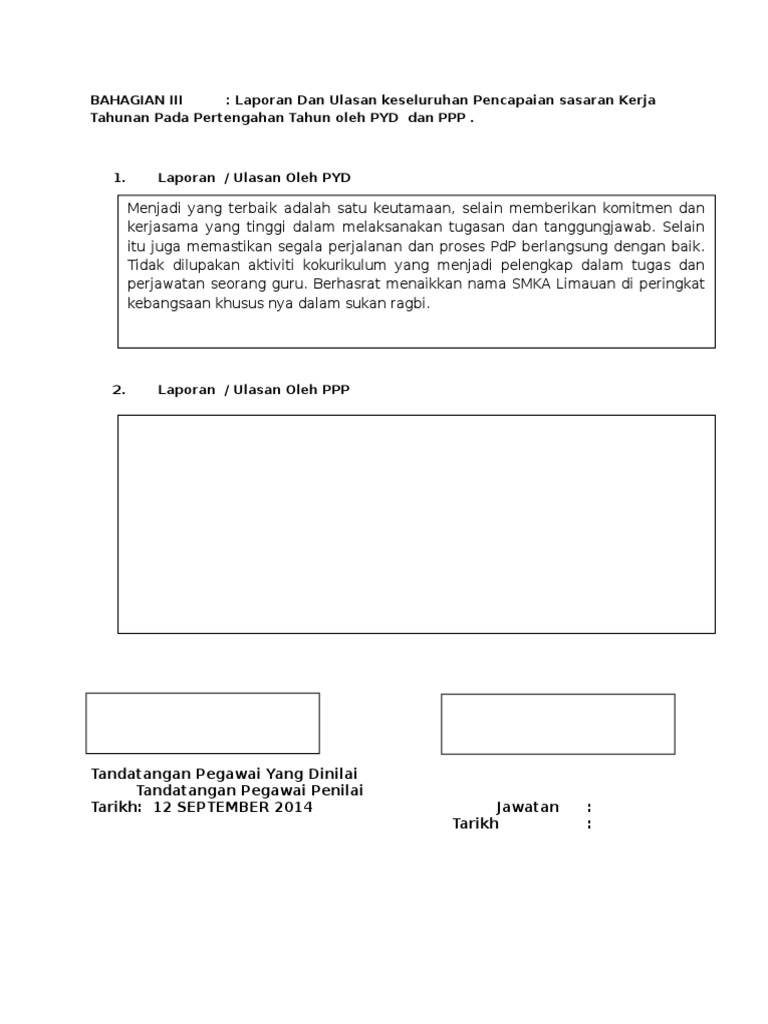 Pegawai Penilai Contoh Ulasan Pyd Dalam Skt