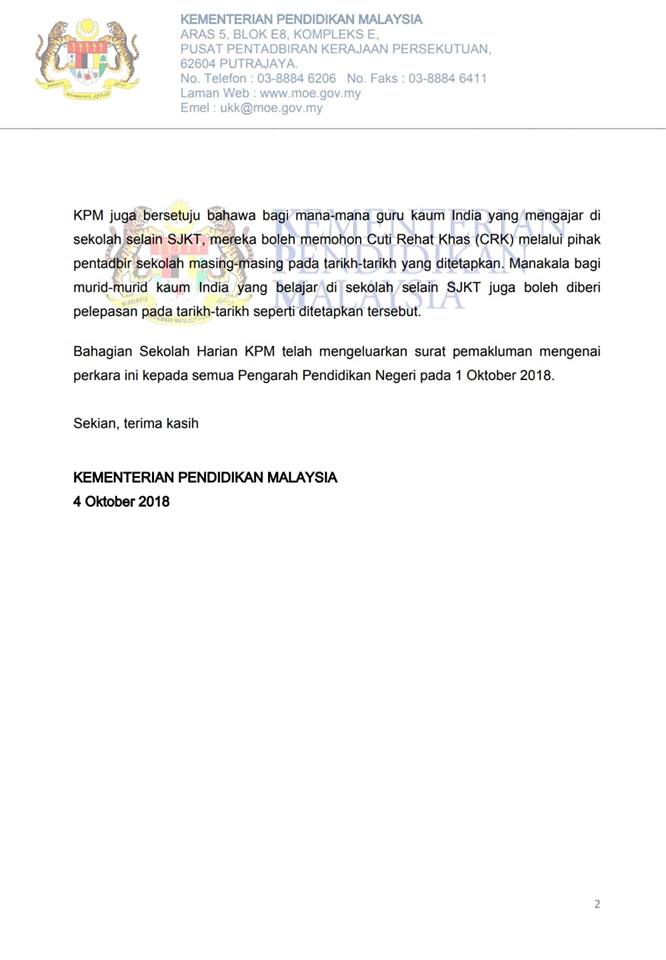Skpanji Kenyataan Media Rasmi Kpm Cuti Perayaan Deepavali 2018