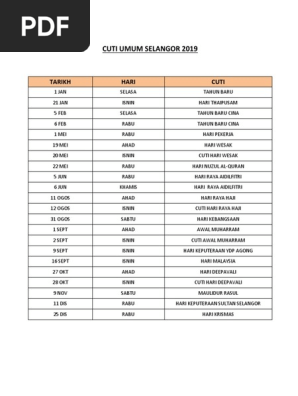 Cuti Umum Selangor 2019 Pdf Rasmi Su2