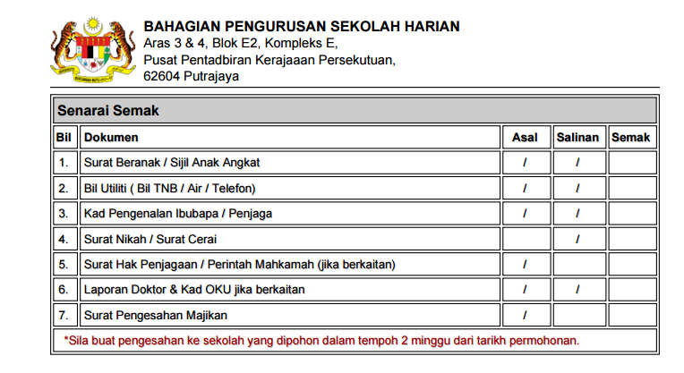 Daftar Sekolah Darjah 1 2018