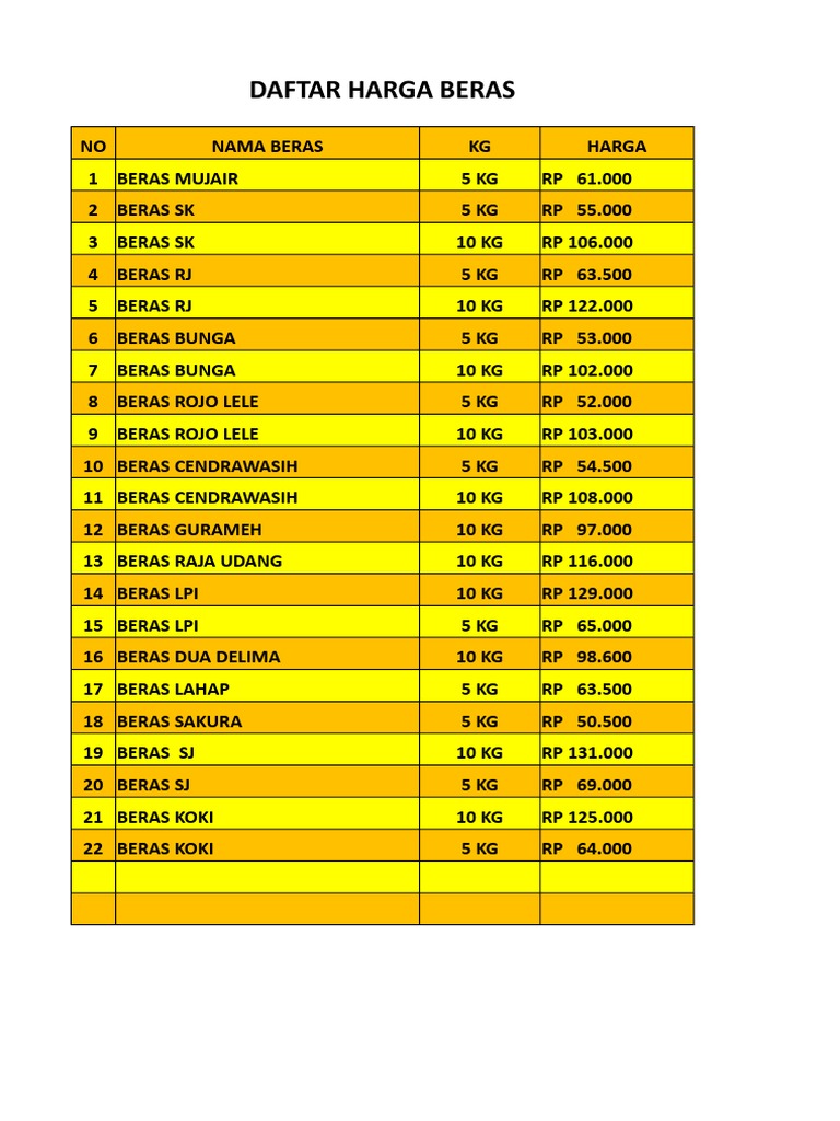 Daftar Harga Rata Rata Eceran Grosir Komoditi Pangan Di Pasar Kota Samarinda Rabu 16 10 2019 Tribun Kaltim