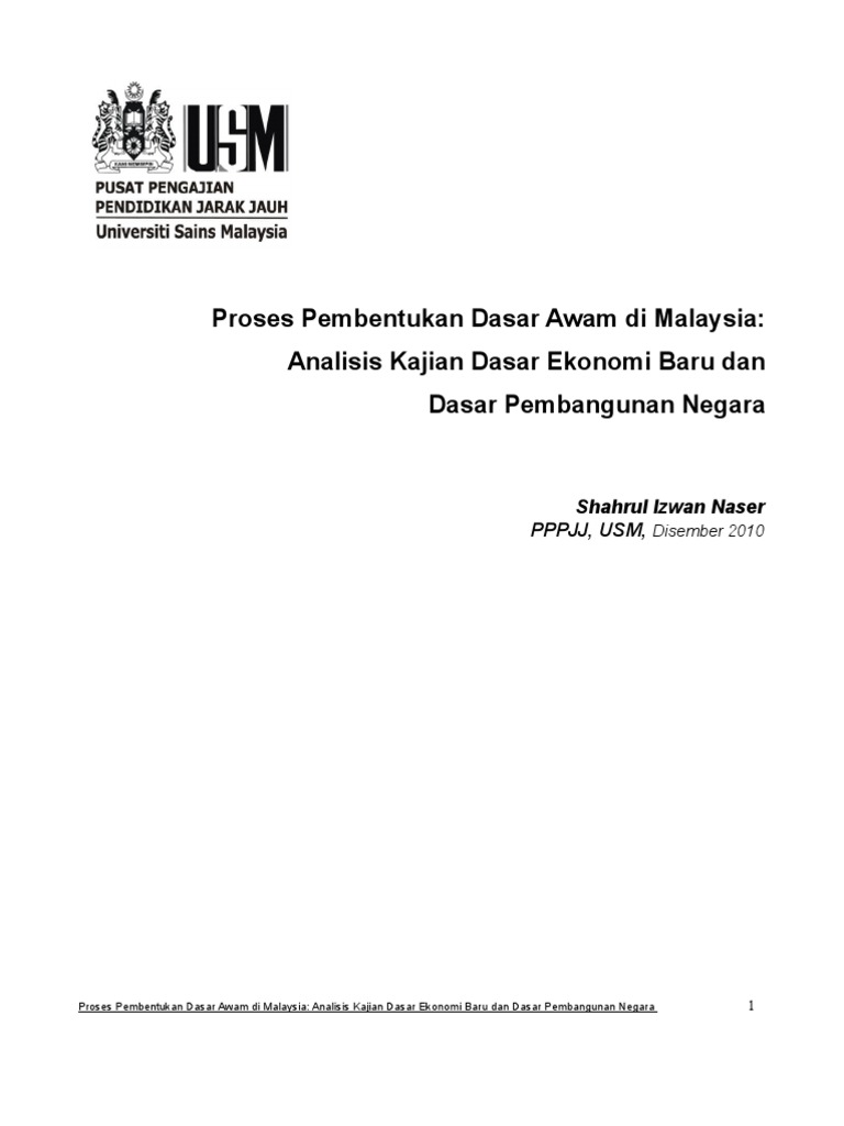 52738255 Proses Pembentukan Dasar Awam Di Malaysia Analisis Kajian Dasar Ekonomi Baru Dan Dasar Pembangunan Negara