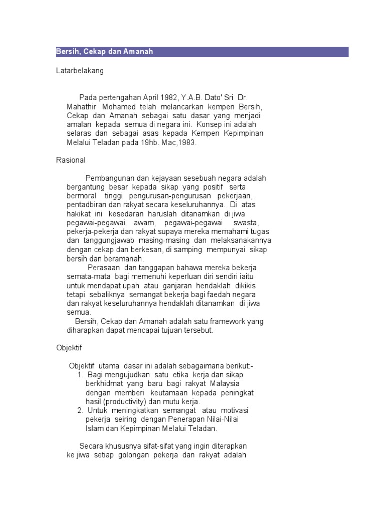Dasar Bersih Cekap Dan Amanah Pdf