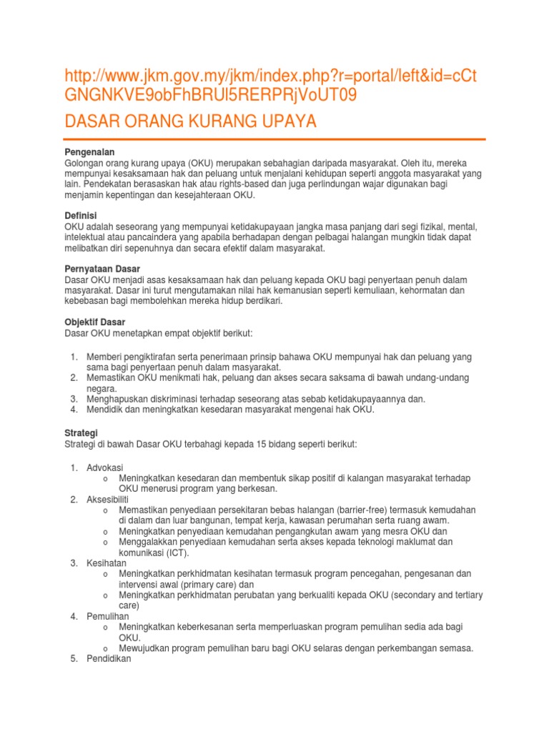 Dasar Orang Kurang Upaya Pengajian Am