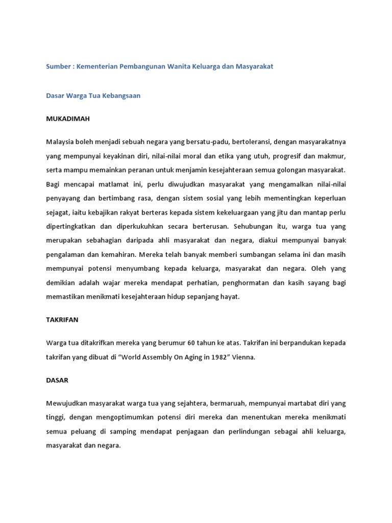 Dasar Warga Tua Kebangsaan Docx Dasar Warga Tua Kebangsaan Mukadimah Malaysia Boleh Menjadi Sebuah Negara Yang Bersatu Padu Bertoleransi Dengan Course Hero