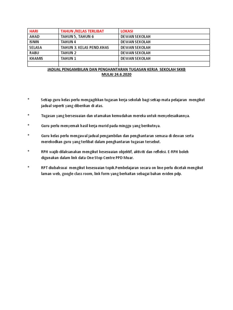 Jadual Tugasan Kerja Sekolah