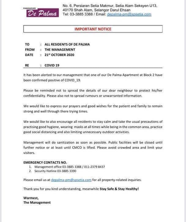 Marinadandy Dandlins On Twitter Ya Allah Bangun2 Je Dapat Ni Apt De Palma Apt De Bayu Apt Seri Baiduri Seri Intan Setia Alam Ada Yang Positif Covid 19 Do You Know