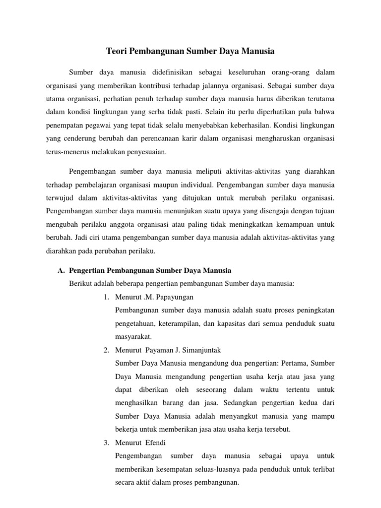 Teori Pembangunan Sumber Daya Manusia Jadi
