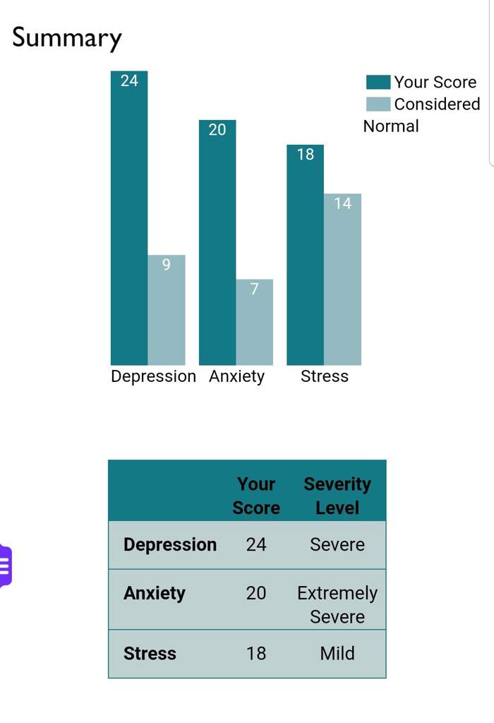 9 38 Pm 13 Hit E Depression Anxiety Stress Test Org Depression Your Results Show That You May Be Currently Experiencing 3 Extremely Depression Of 33 For Depression A Score Of 9 Is Considered Normal For Depression