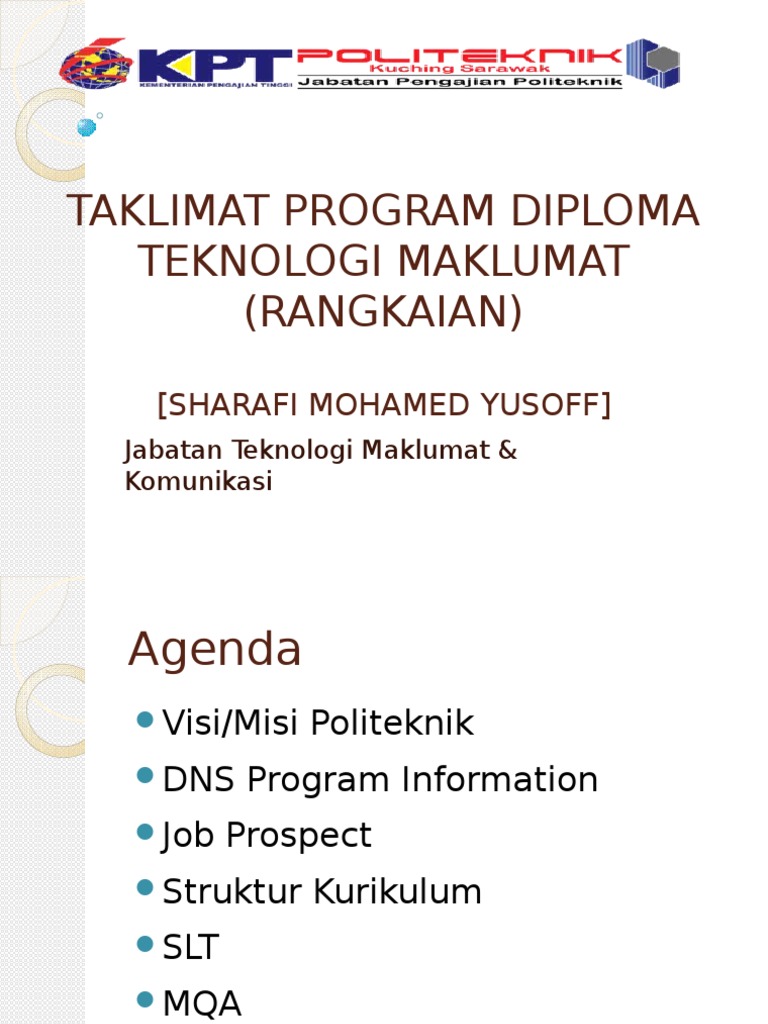 Taklimat Program Diploma Teknologi Maklumat Rangkaian Sharafi Mohamed Yusoff