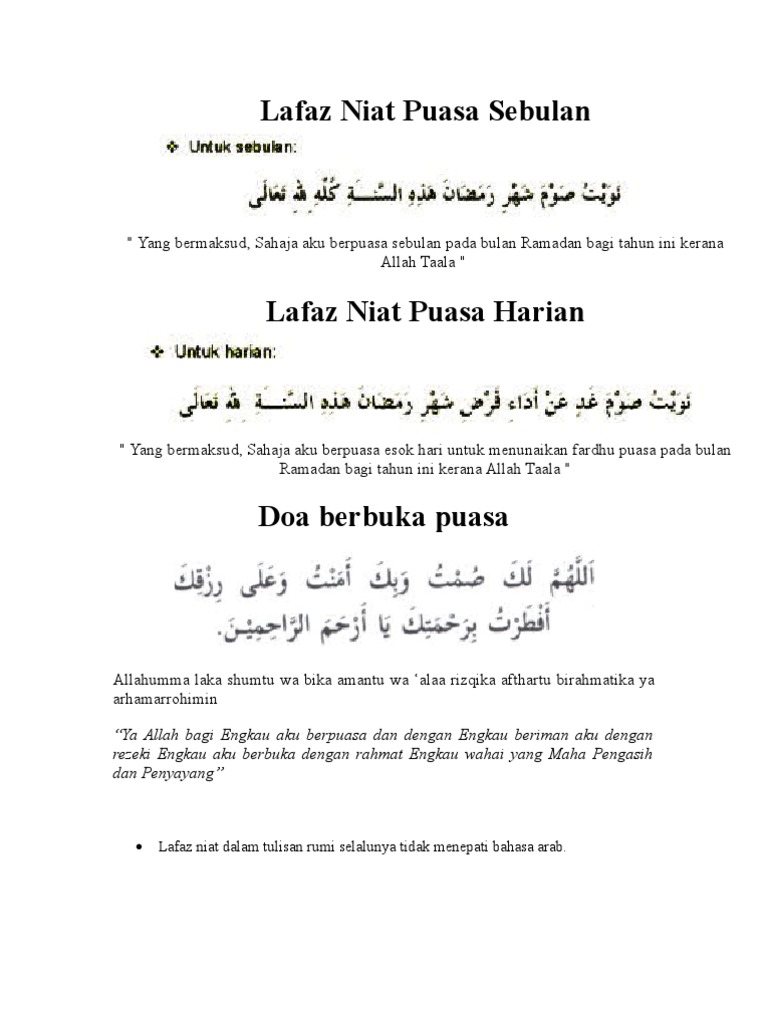Niat Puasa Ramadhan Dan Doa Berbuka Puasa Semakan My
