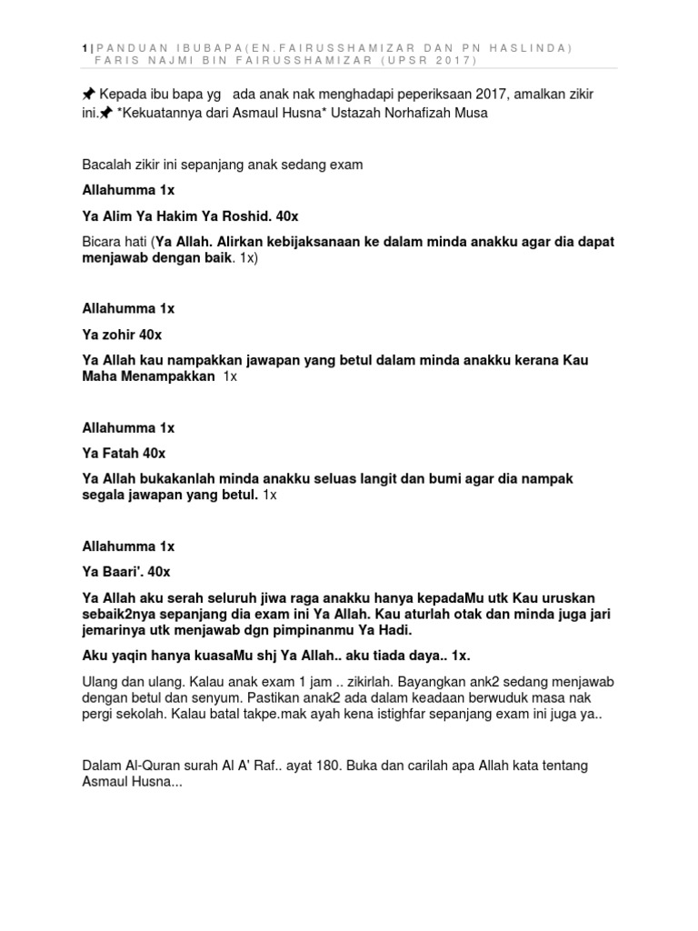 Amalan Zikir Dan Doa Dengan Asmaul Husna Untuk Anak Menghadapi Peperiksaan Info Inspirasi Resepi