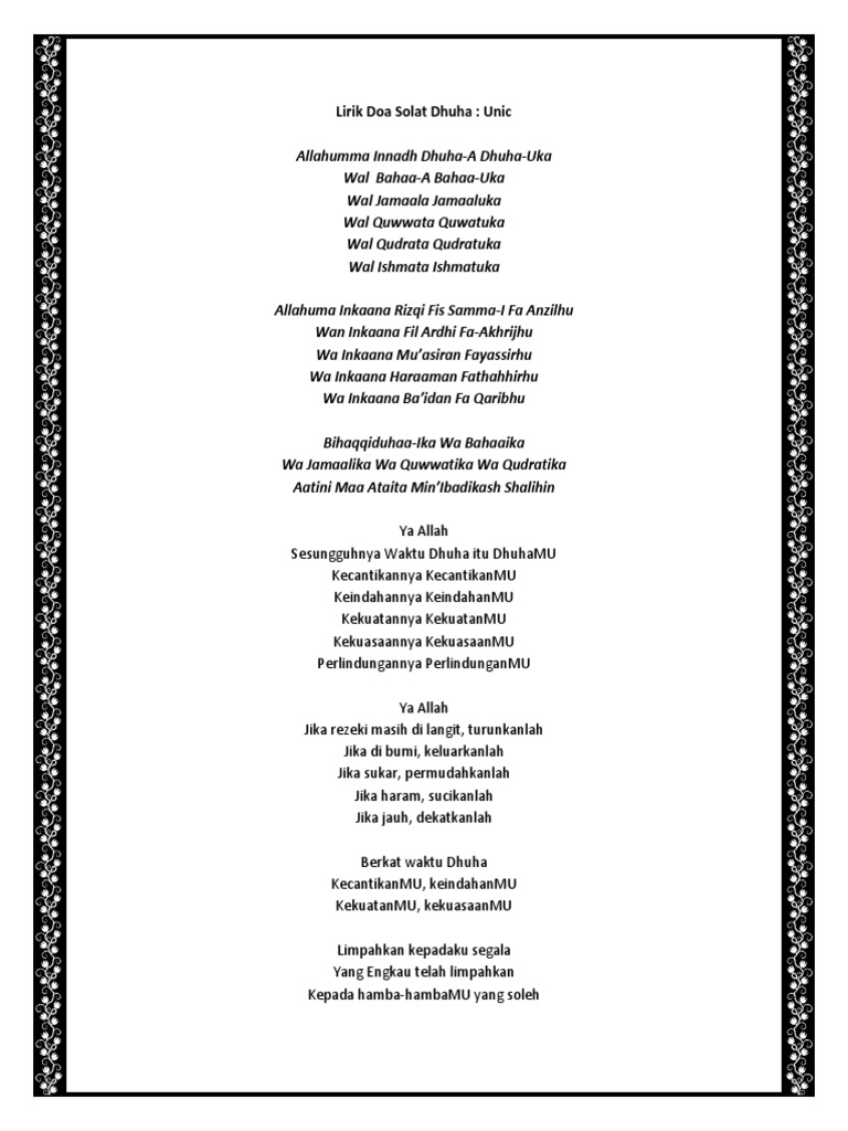 Doa Solat Dhuha Lyric Unic Youtube
