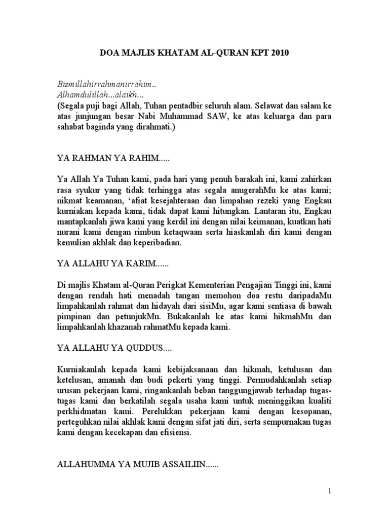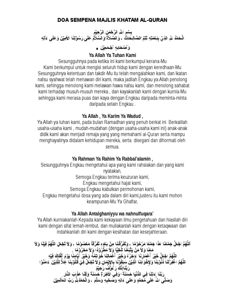 Doc Doa Majlis Khatam Al Quran Fariz Hassan Academia Edu