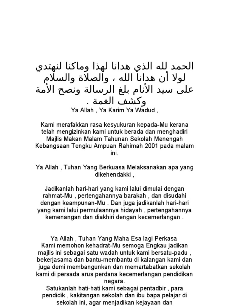 Teks Bacaan Doa Majlis Makan Malam Batch Ibnu Khaldun Cute766