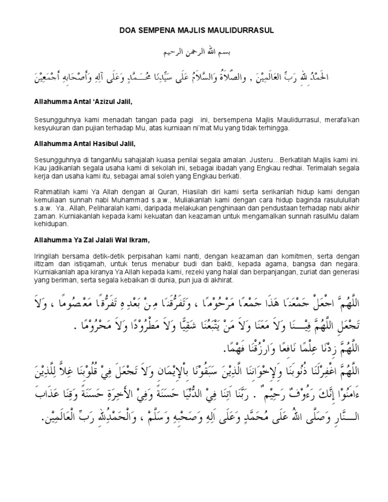Koleksi Doa Di Majlis Majlis Rasmi Dan Separuh Rasmi Kerajaan Doa Sambutan Maulidur Rasul
