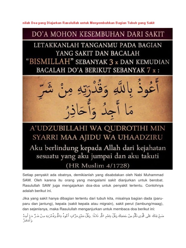 Doa Rasulullah Untuk Menyembuhkan Bagian Tubuh Yang Sakit
