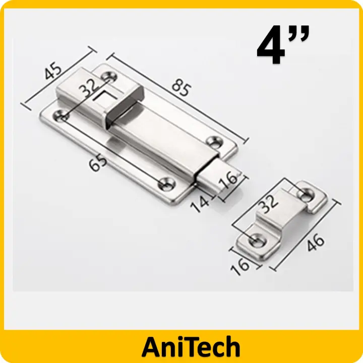 4 Anitech Square Bolt Slug Stainless Steel Security Safety Door Latch Door Slide Latch Bolt Gate Fence Selak Pintu Heavy Duty Door Guard Safety Guard Security Door Lock Latch For Home Hotel