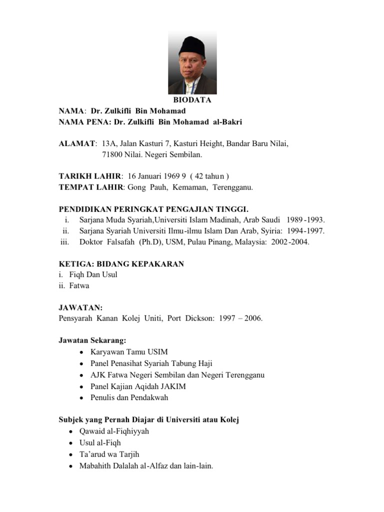 Biodata Profil Dr Zulkifli Al Bakri Menteri Di Jpm Hal Ehwal Agama Yusufultraman Com