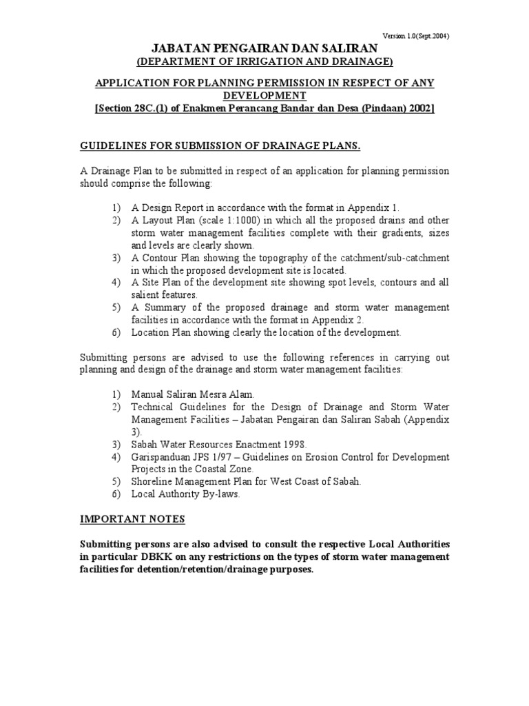 Jabatan Pengairan Dan Saliran Version 1 0 Sept 2004 Drainage Basin Stormwater
