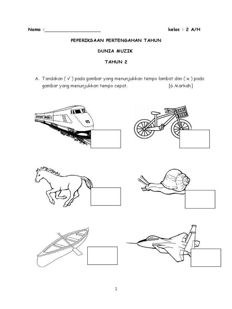 Soalan Ujian Dunia Muzik Tahun 2 Kssr