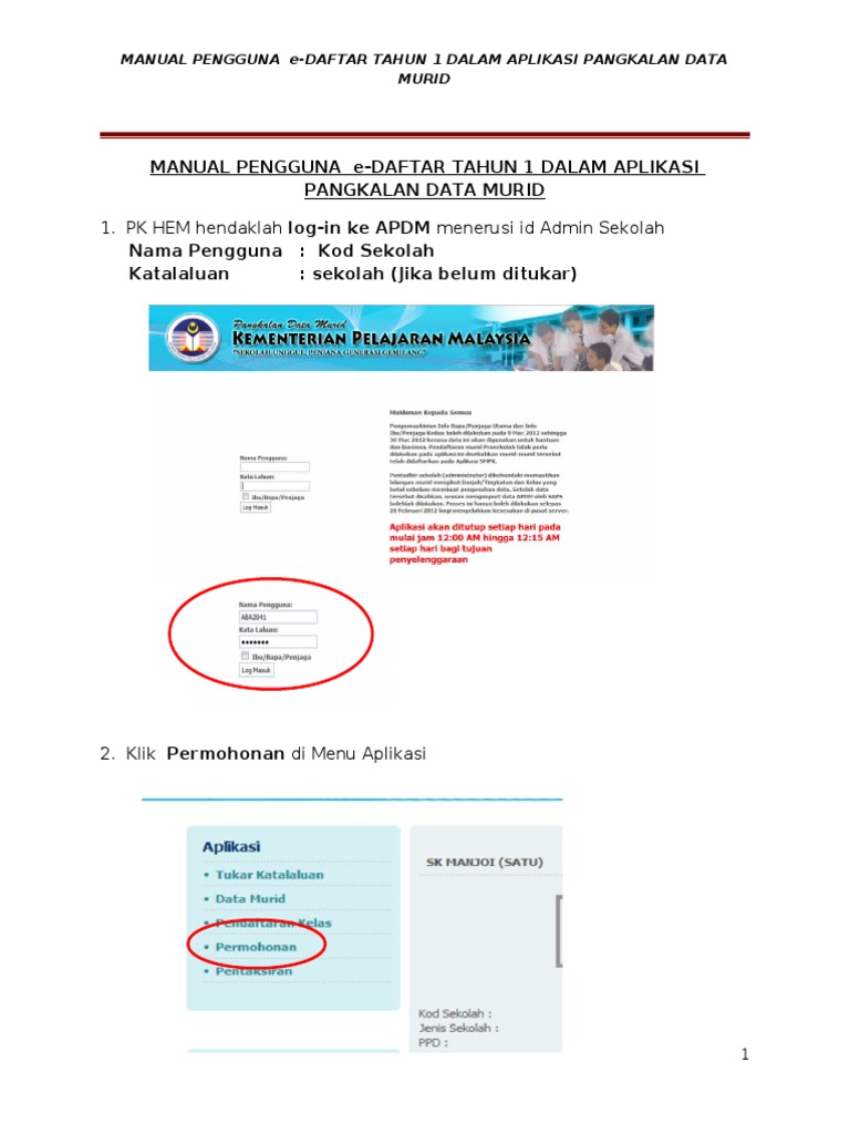 E Daftar Tahun 1 Dalam Aplikasi Pangkalan Data Murid Pdf Document