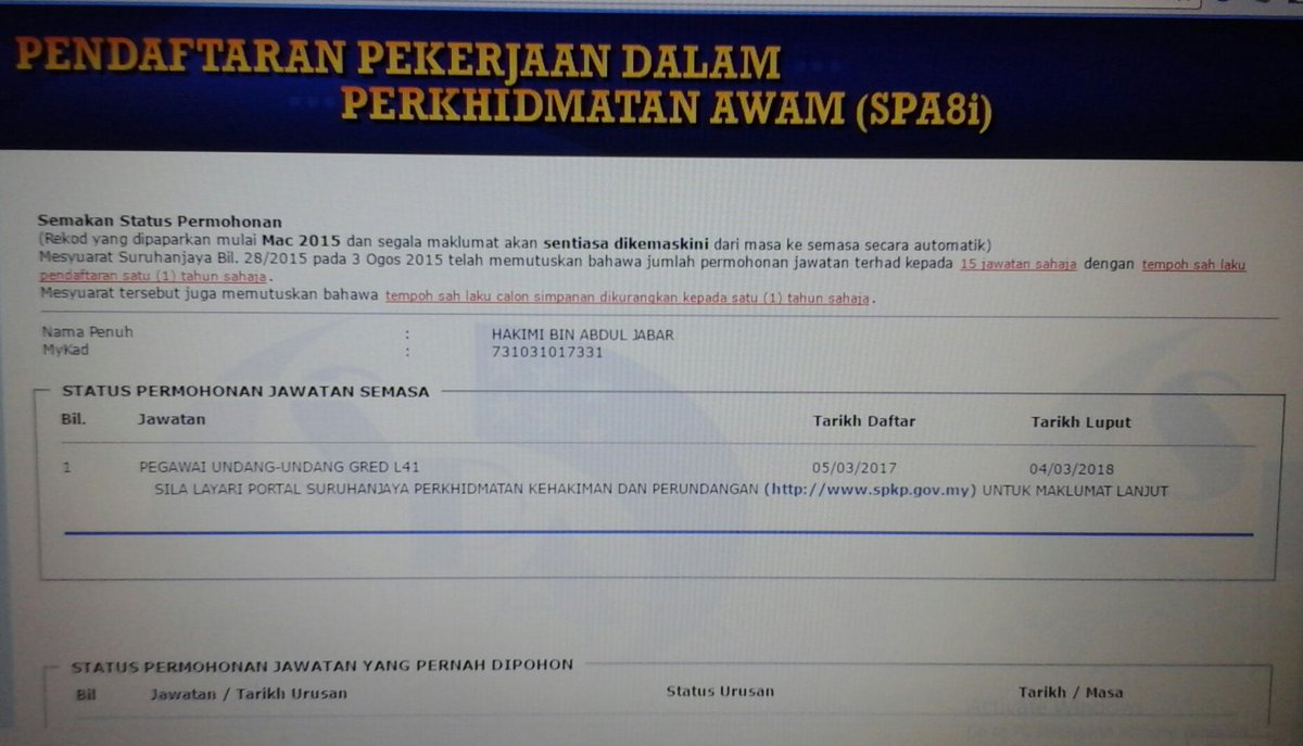 Semakan Spa8i Pendaftaran Pekerjaan Dalam Perkhidmatan Awam