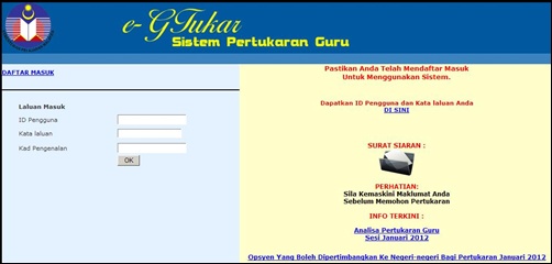 Egtukar Permohonan Pertukaran Guru Secara Online