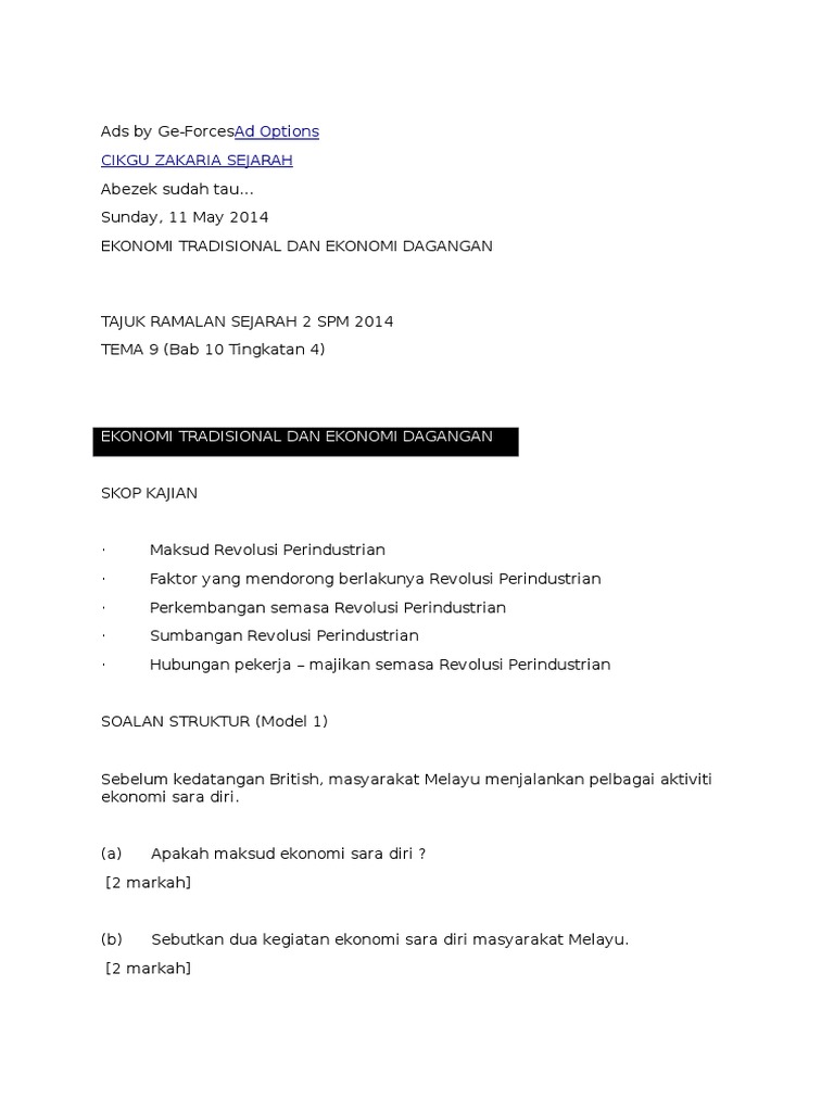Ekonomi Tradisional Sejarah Tingkatan 4
