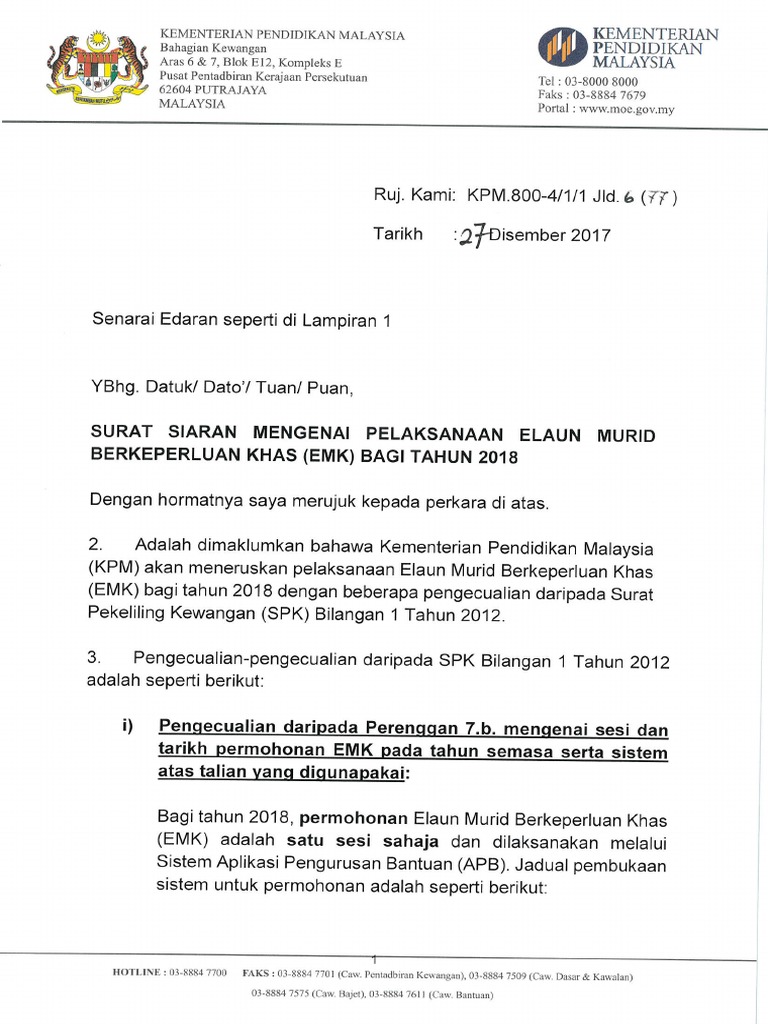 Surat Siaran Pelaksanaan Emk Tahun 2018 Pdf