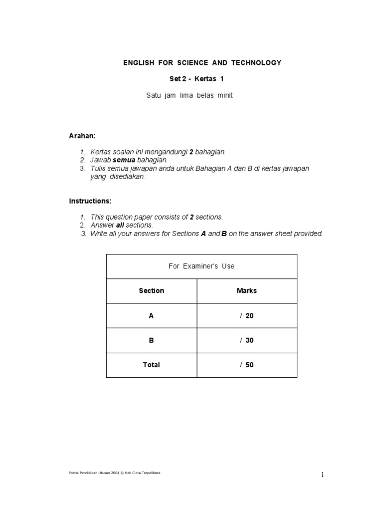 English For Science And Technology Spm Paper 1