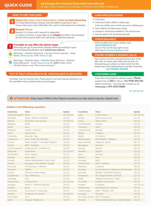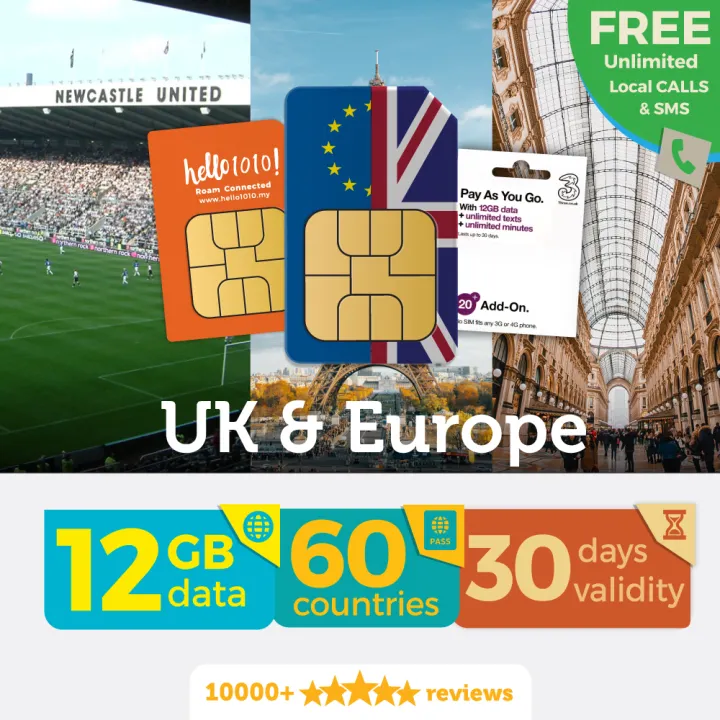 Uk Europe 60 Countries Three 12gb Travel Prepaid Sim Card Shopee Malaysia