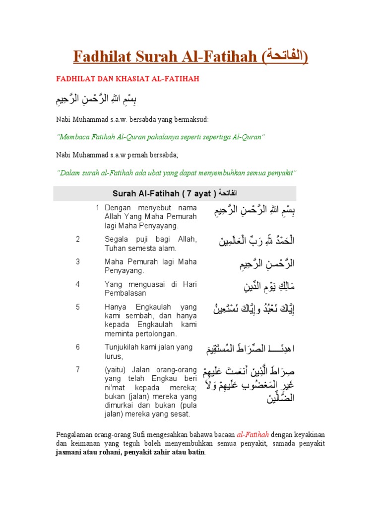 Fadhilat Khasiat Surah Al Fatihah Comemay78
