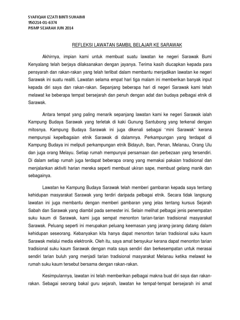 Refleksi Lawatan Sambil Belajar Ke Sarawak
