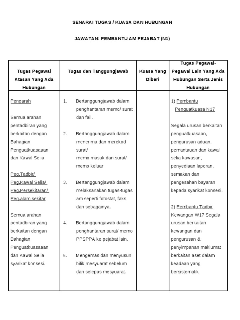 Deskripsi Tugas Pembantu Tadbir Kewangan Gred W19 Semakan My
