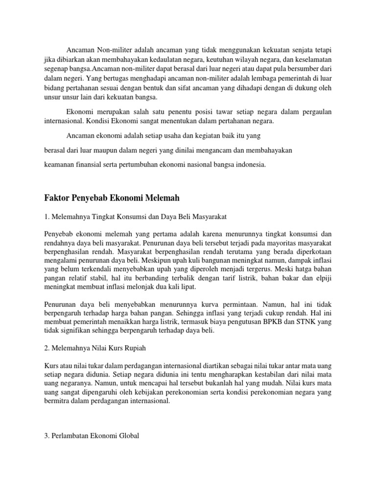 Faktor Penyebab Ekonomi Melemah