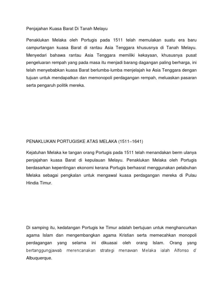 Faktor Kedatangan Kuasa Barat Ke Tanah Melayu Pdf