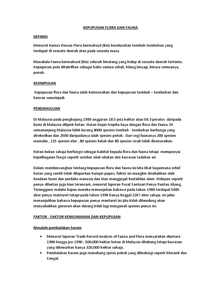 Punca Kepupusan Hidupan Flora Dan Fauna Di Malaysia Pdf Document