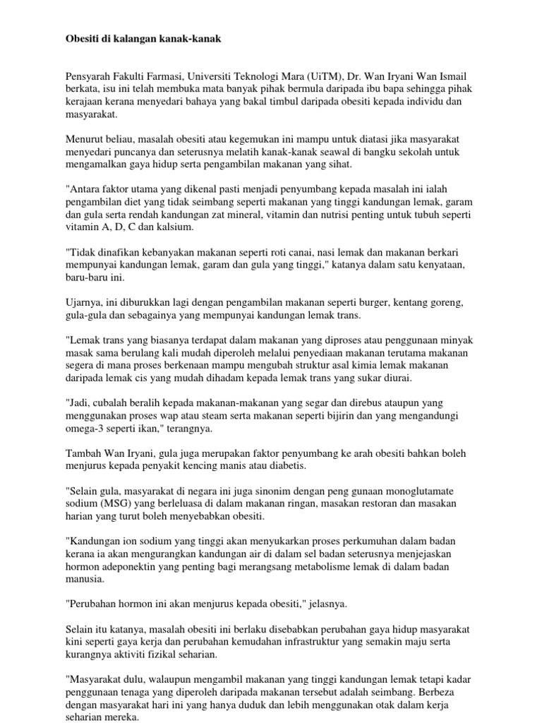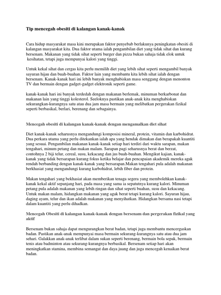 Doc Tajuk Masalah Obesiti Dalam Kalangan Kanak Kanak Di Malaysia Rasul Salleh Academia Edu