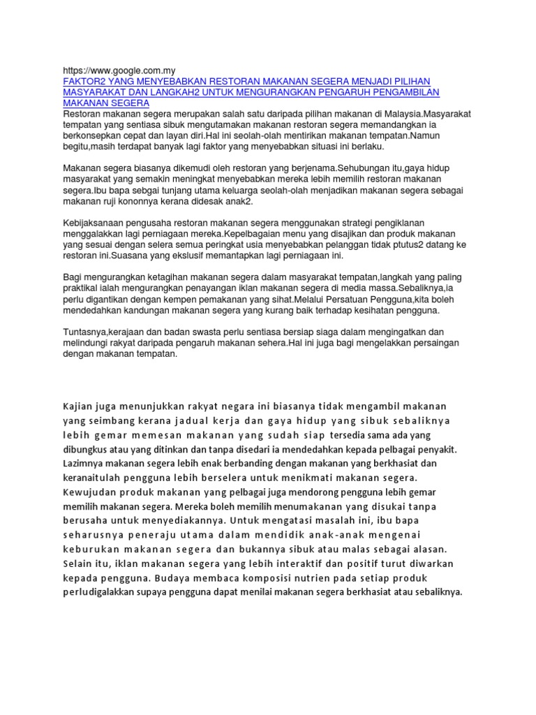 Karangan 4 Kesan Buruk Pengambilan Makanan Segera