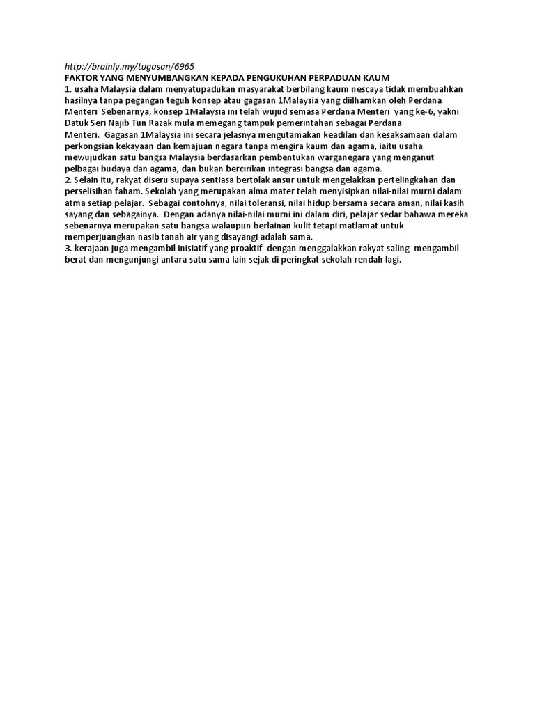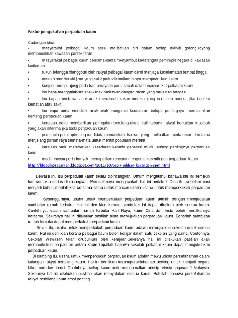Karangan Faktor Pengukuhan Perpaduan Kaum