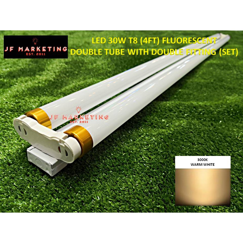Led 30w T8 4ft Fluorescent Double Tube With Double Fitting Set Shopee Malaysia